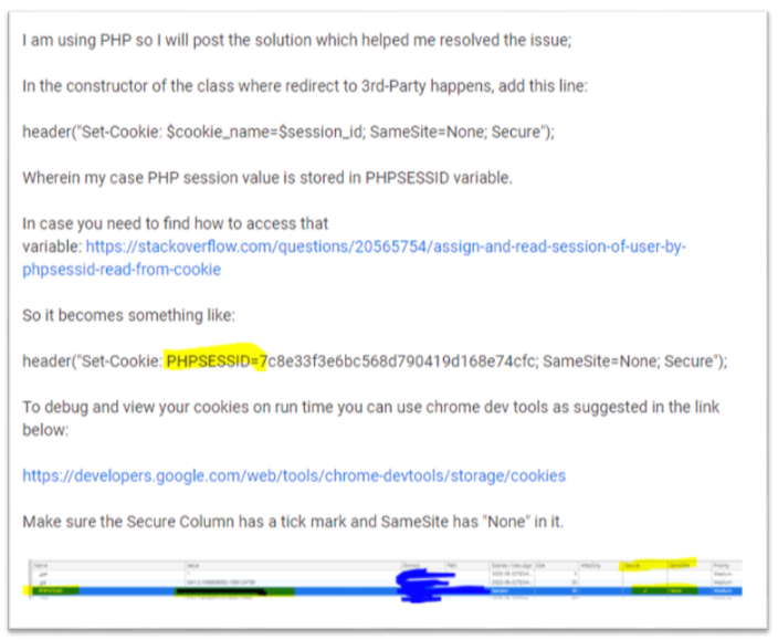 3) 위 글 중, php 관련 내용이었지만, 세션 값을 SameSite=none으로 설정해주고 있는 것을 볼 수 있었습니다. 그래서, 저희 JSESSION을 sameSite=none으로 바꿔보았더니 문제없이 결제가 이루어졌습니다.