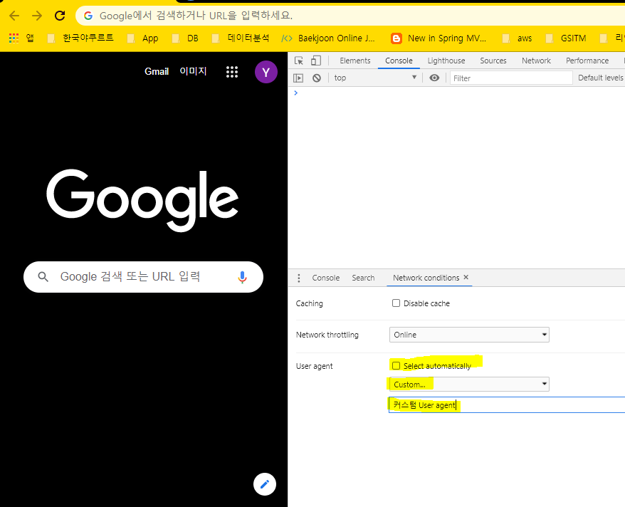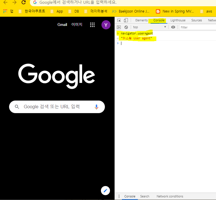 5. console -> enter "navigator.userAgent" -> check custom user agent