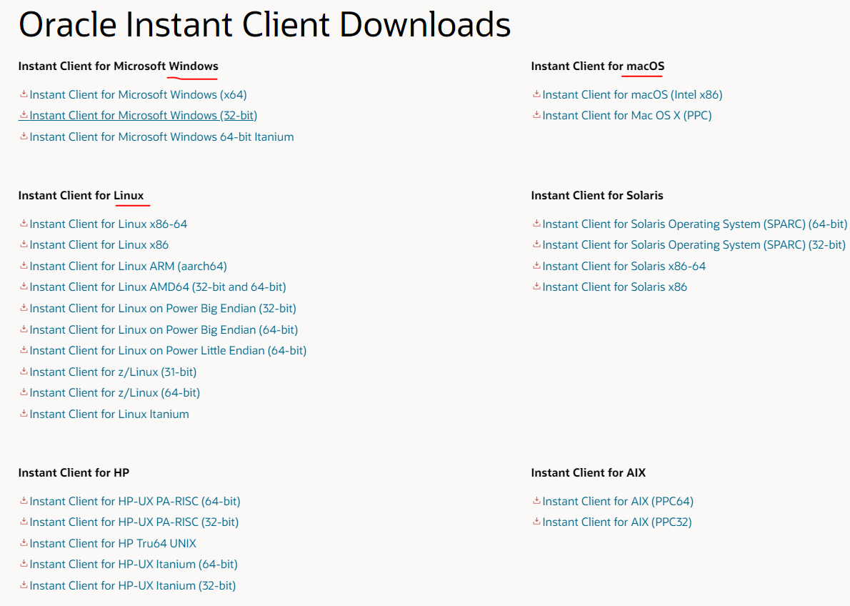 1) https://www.oracle.com/database/technologies/instant-client/downloads.html