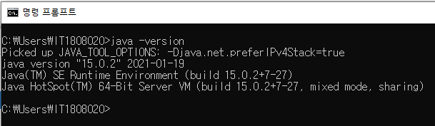 CMD 에서 java -version을 입력했을 때, 아래와 비슷하게 출력이 되어야 완료가 된 것이다.