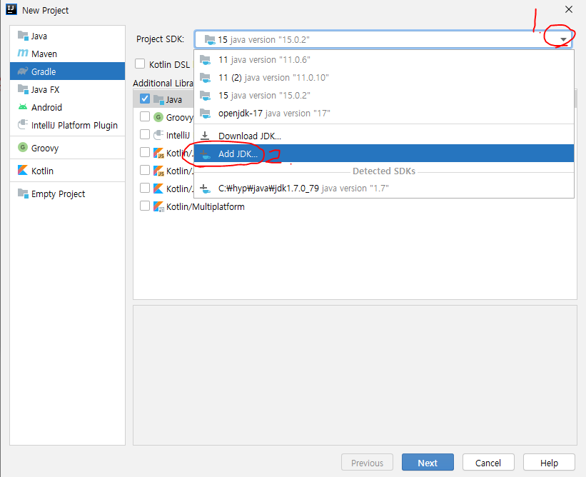4. 만약 설치한 JDK 버전이 보이지 않는다면, 아래와 같이 Add JDK으로 설치한 JDK 경로를 설정해주도록 한다.
