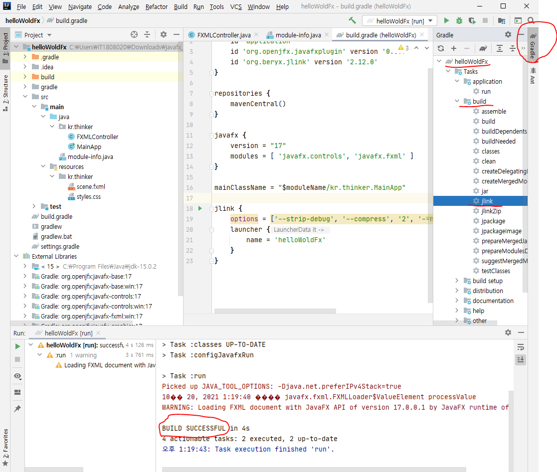19. Gradle에 build -> jlink를 실행한다.
