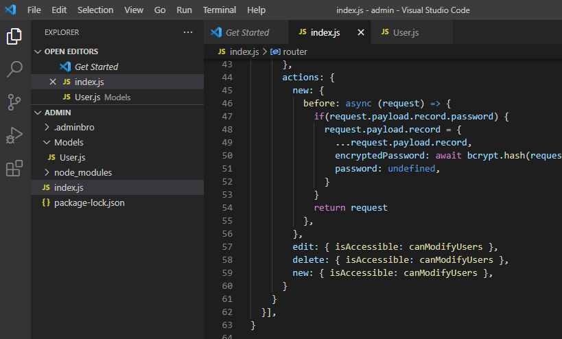 npm install admin-bro @admin-bro/express