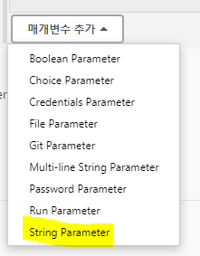 1) 이 빌드는 매개 변수가 있습니다. 선택 -> 매개변수 추가 클릭